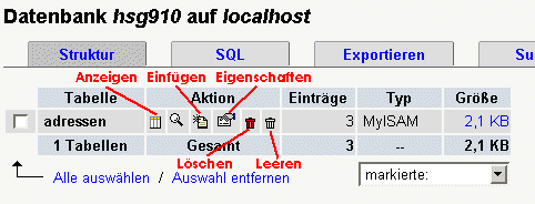 erscheint eine Liste von Tabellen. Hier gibt es bisher nur eine Tabelle mit
