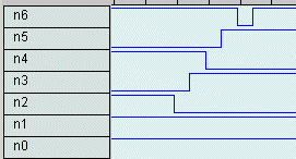 Baue obige Schaltung in Hades auf. Verlängere die Gatter-Laufzeiten (rechte Maustaste auf Gatter, Edit, gate delay) für die Und- und das Oder-Gatter auf 1E-1s, beim Inverter auf 5E-2s. Halte die Eingänge a und c auf 1 und schalte b. Was ist am Ausgang y zu beobachten?