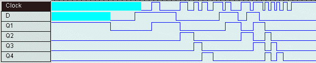 Folgendes Schieberegister ist aus vorderflankengetriggerten MS-FFs (Hades: metastabiles DFF) aufgebaut.