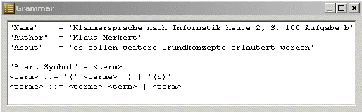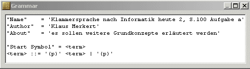 im GoldParser testen kann. Ein Beispiel sei hier angeführt: