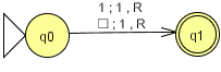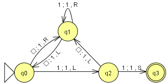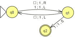 - Keine andere TM (Anz. Zustände gleich) soll mehr Einsen auf das Band schreiben.