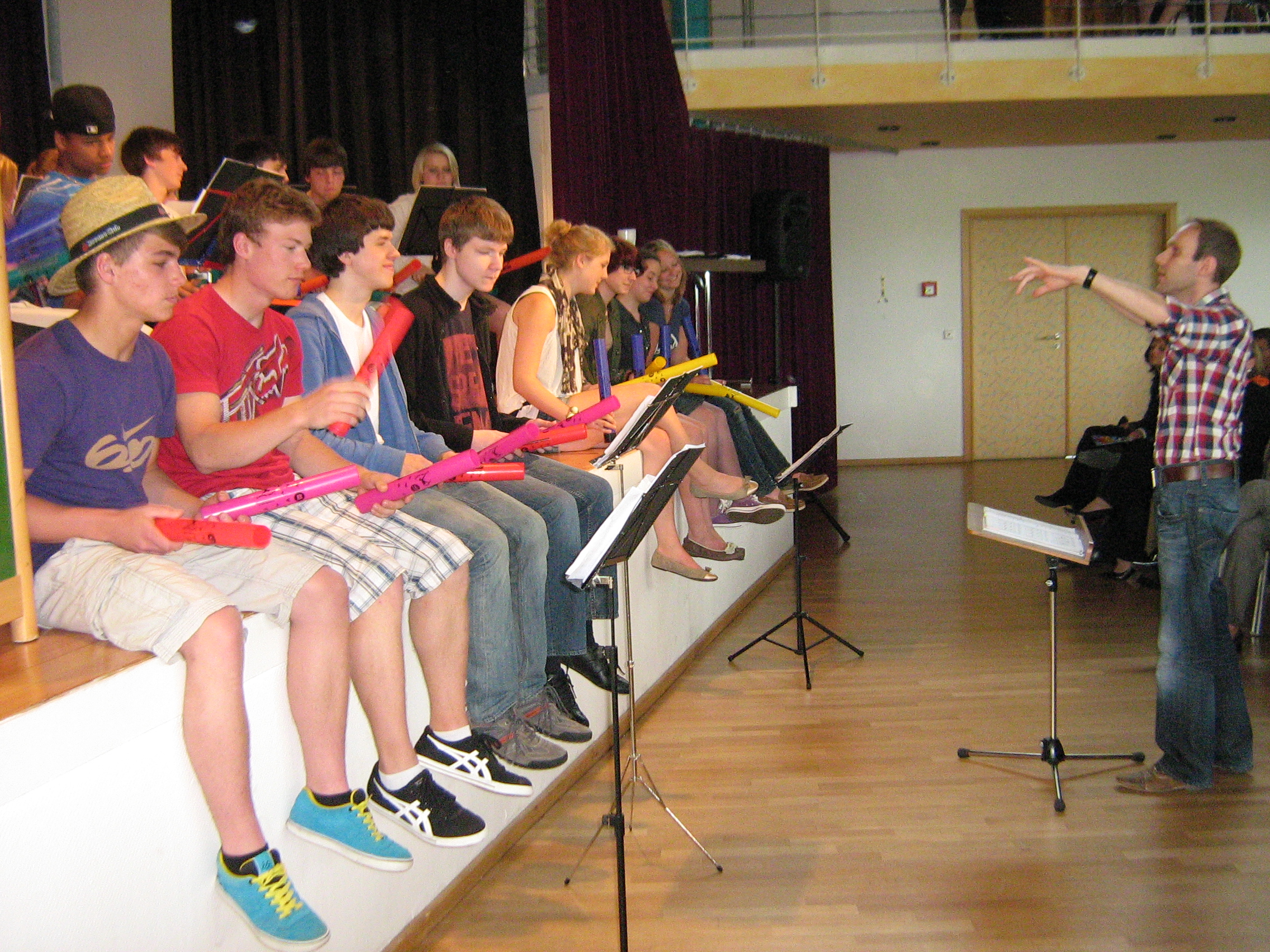 Zum Dank an die Sponsoren und die Lehrkräfte führte die 10a zwei Stücke mit so genannten Boomwhakers auf.