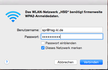 Üblichen Benutzernamen mit "@hsg-kl.de" und Passwort eingeben.